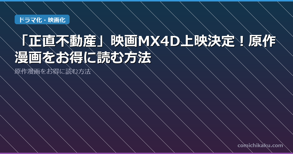 夏原武、水野光博、大谷アキラ原作の実写映画「正直不動産」が、5月15日より一部劇場でMX4D上映されることが決定しました。スクリーンを超えて突風が吹き荒れる迫力の体験が話題となっています。映画の公開を機に原作漫画が気になった方へ、お得に読める電子書籍サービスをご紹介します。